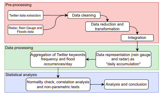 Statistical Analysis of Meteorological, Twitter and Floods Data
